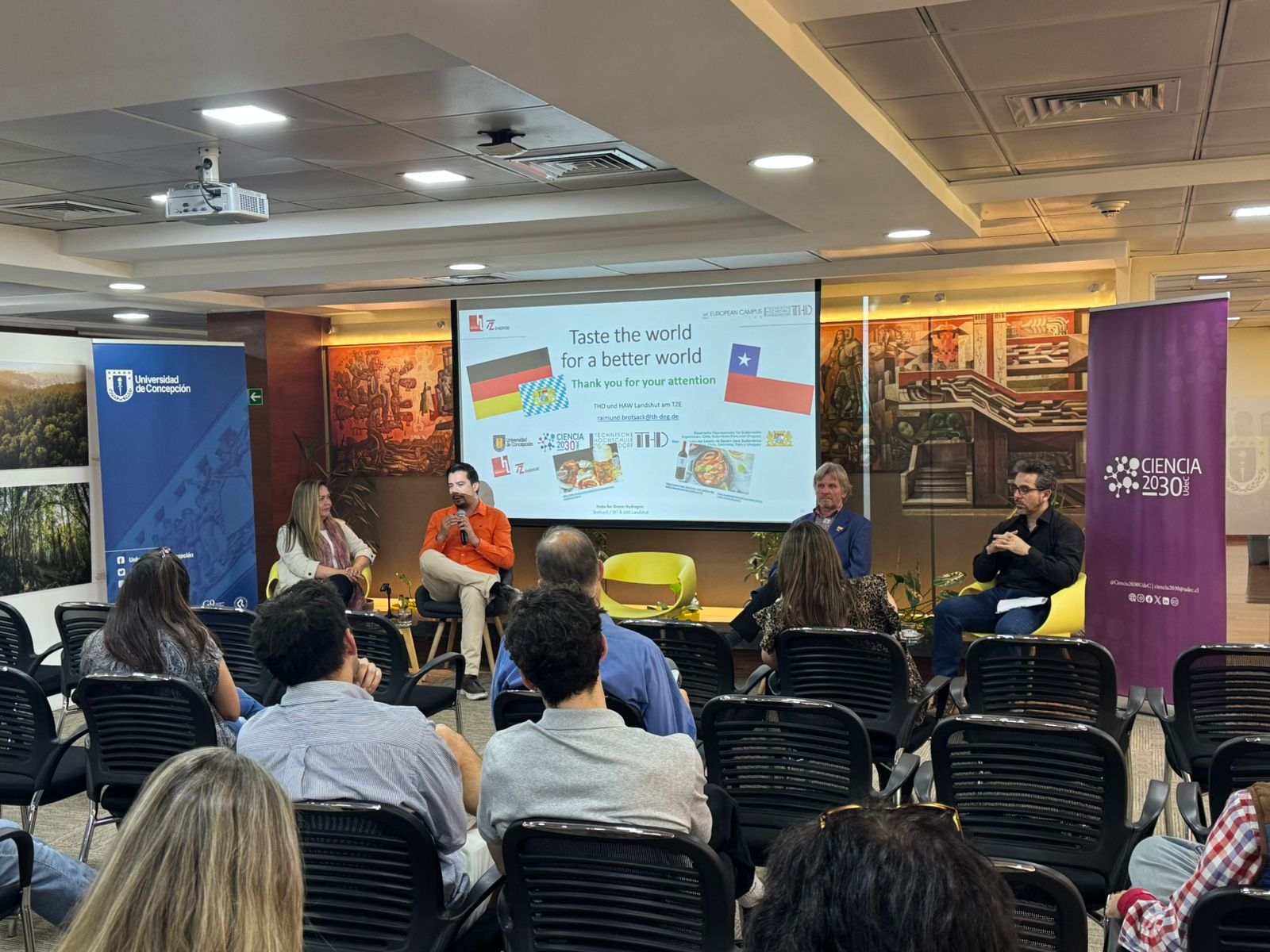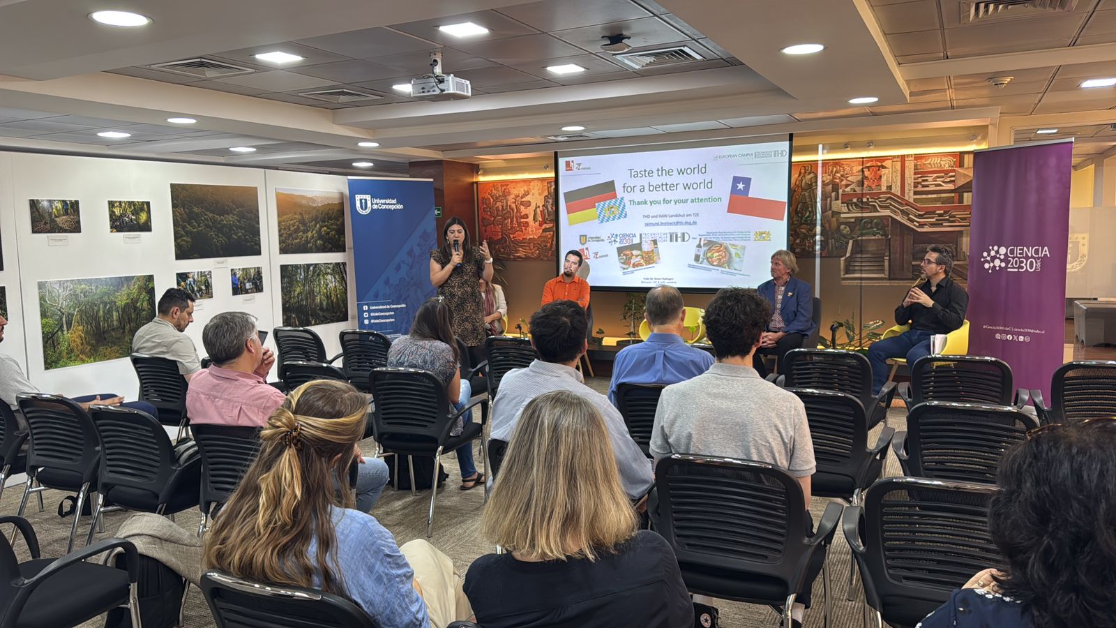 El pasado jueves 12 de diciembre se llevó a cabo en las dependencias de la Unidad de Santiago de la Universidad de Concepción el evento “3rd German & Chilean Innovation and Startup Ecosystem Meetup: How innovation and startups can contribute to support the industries of the future”. La actividad, organizada por el Plan Ciencia 2030 UdeC y la Oficina del Estado de Baviera para Sudamérica, tuvo como objetivo principal fomentar el diálogo y la colaboración entre los ecosistemas de innovación de Alemania y Chile, abordando los desafíos y oportunidades en torno a la seguridad energética mediante la integración de bioenergía y energías renovables.
