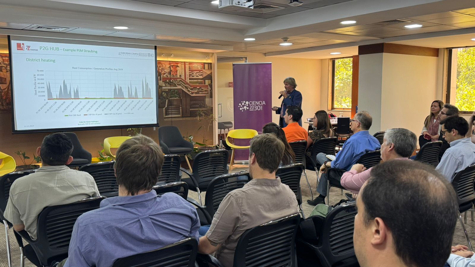 El encuentro contó con la destacada participación del Profesor Dr. Raimund Brotsack, especialista en energías renovables del Deggendorf Institute of Technology (DIT) de Alemania, quien estuvo de visita en Chile durante una semana, explorando colaboraciones con diversas unidades de la Universidad de Concepción. Entre sus actividades previas, el Dr. Brotsack visitó la Unidad de Desarrollo Tecnológico (UDT), dictó un seminario en la Facultad de Ciencias Ambientales dirigida a estudiantes tesistas, postgraduados y académicos; además participó en diversas reuniones con académicos y académicas de la Universidad.