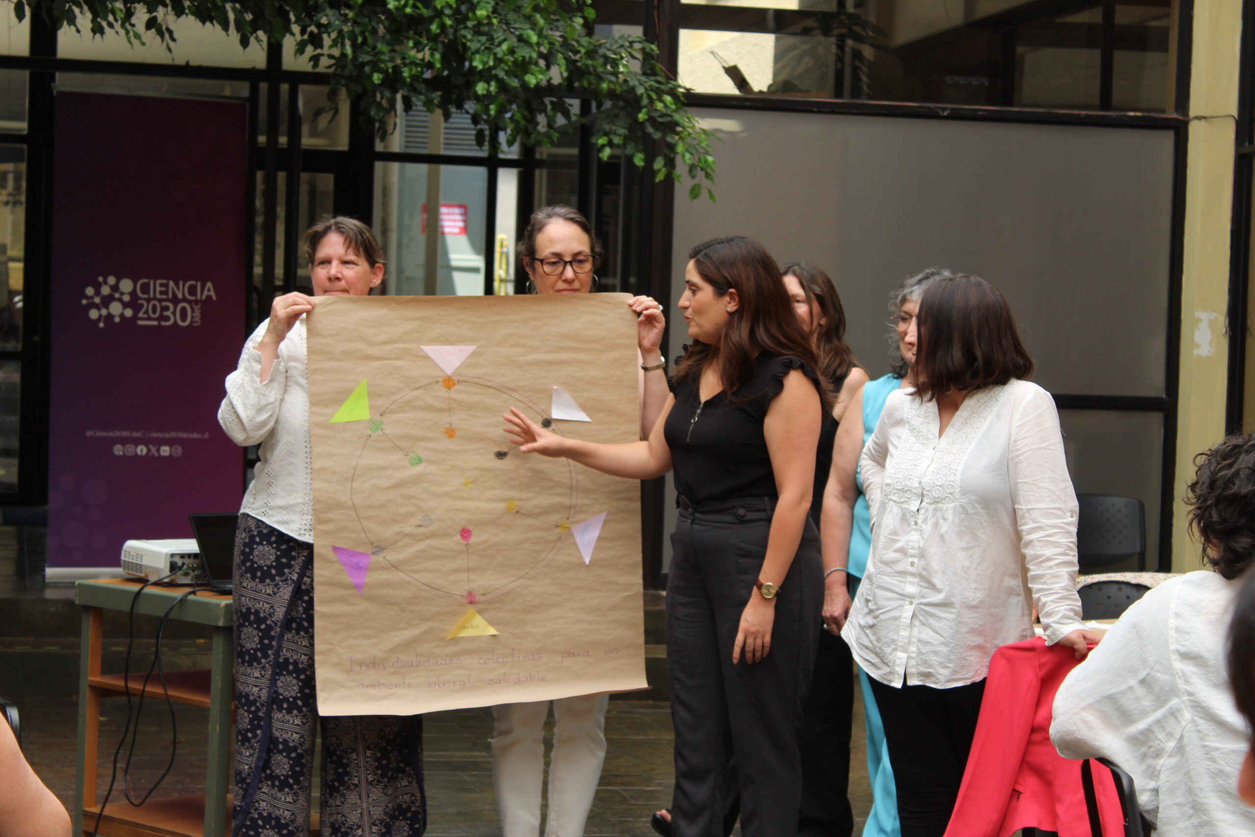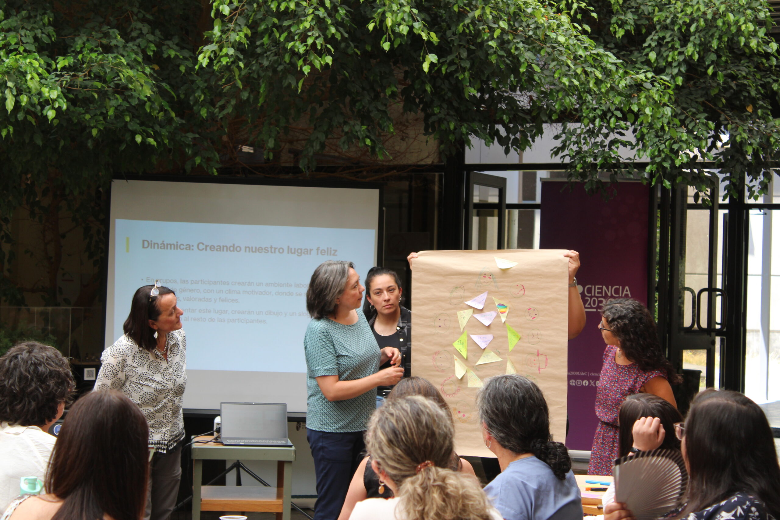Dra. Laura Farías, docente del Departamento de Oceanografía de la Facultad de Ciencias Naturales y Oceanográficas, destacó el impacto de la actividad: “La motivación fue que, desde nuestro quehacer diario, a veces perdemos herramientas de colaboración e integración, especialmente con colegas mujeres que comparten problemáticas similares. Agregando que, “en el taller he conocido muchas colegas, yo sé que a todas nos pasa lo mismo, pero si bien el diagnóstico es claro, necesitamos herramientas para reconocer nuestras habilidades y llevarlas a cabo, para cuando tengamos desafíos y sean nuestros frentes asumirlos con total comodidad y capacidad”.