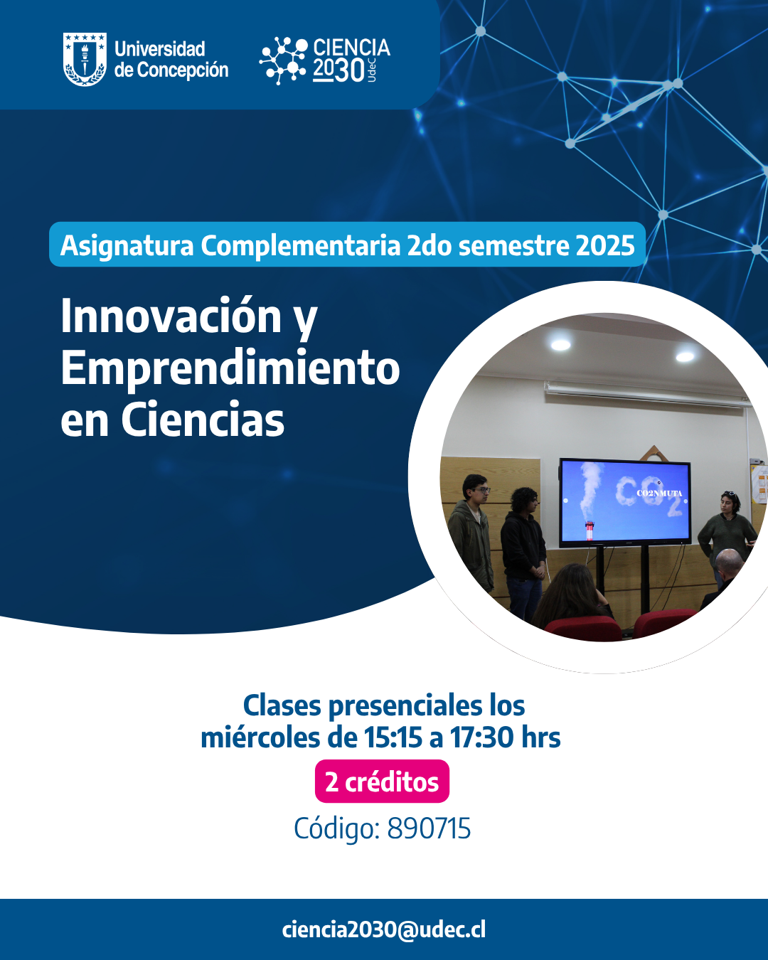 📌 Innovación y Emprendimiento en Ciencias (890715) [2 créditos] – Miércoles de 15:15 a 17:30 hrs (sala por confirmar).