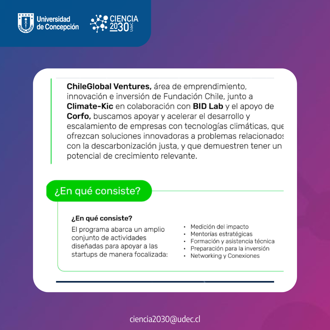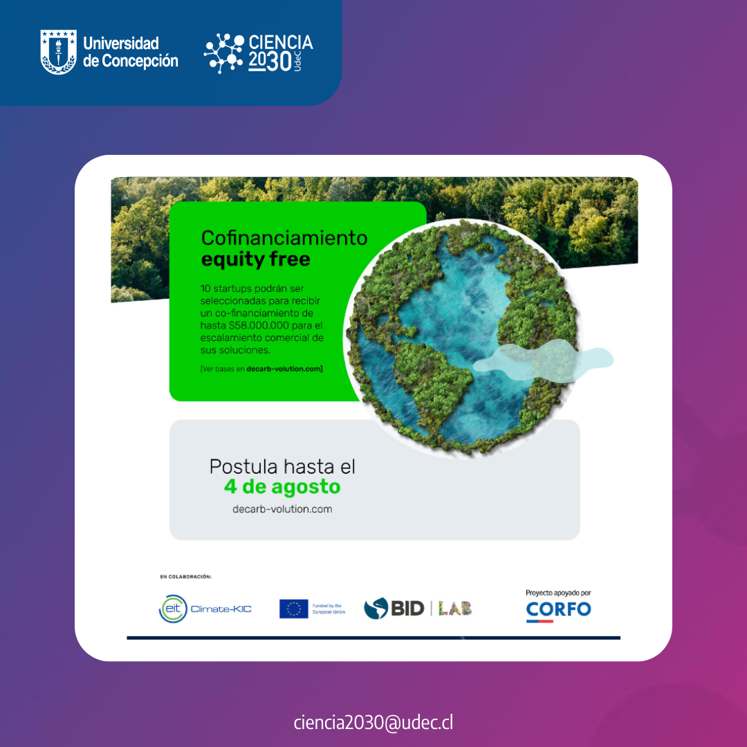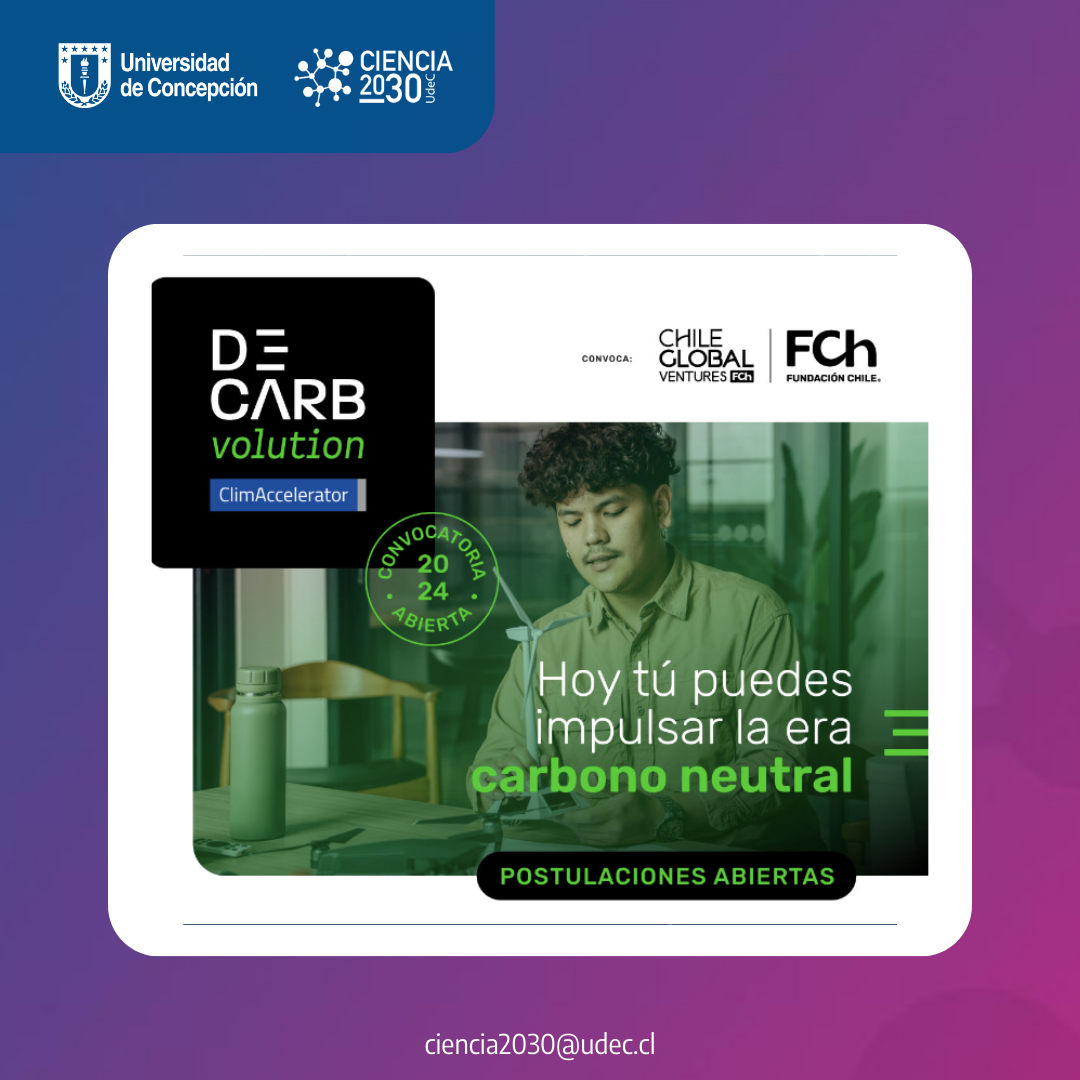 ¡Nueva convocatoria! Chile Global Ventures acaba de lanzar Decarb-volution, programa de aceleración desarrollado junto a Climate-KIC en colaboración con BID Lab y el apoyo de Corfo, que busca apoyar el desarrollo y escalamiento de startups con tecnologías que mitiguen los efectos del cambio climático.