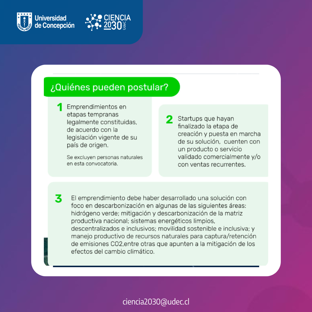 Si cuentas con soluciones innovadoras a problemas relacionados con la descarbonización justa, y que demuestren tener potencial de crecimiento relevante. ¡No te quedes fuera y haz el cambio!