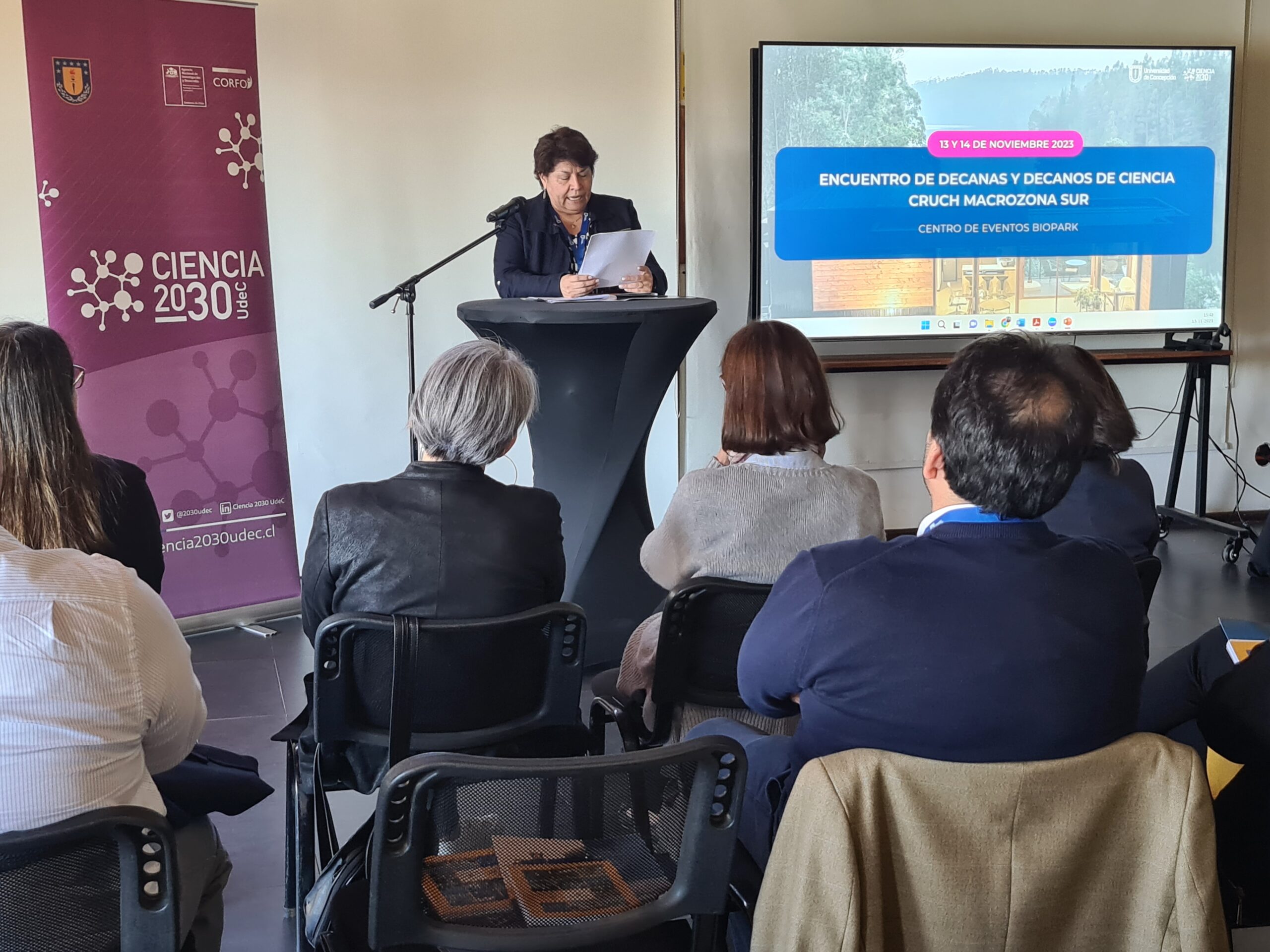 El pasado 13 de noviembre, la Universidad de Concepción dio la bienvenida al Encuentro de Decanas y Decanos de Ciencia del Consejo de Rectores de las Universidades Chilenas (CRUCH) de la Macrozona Sur, marcando un hito en la colaboración científica y académica. La jornada, que contó con la participación de autoridades del Ministerio de Ciencia, Tecnología, Conocimiento e Innovación, se centró en promover el diálogo entre las regiones del Maule, Ñuble, Biobío, Araucanía, Los Ríos y Los Lagos.