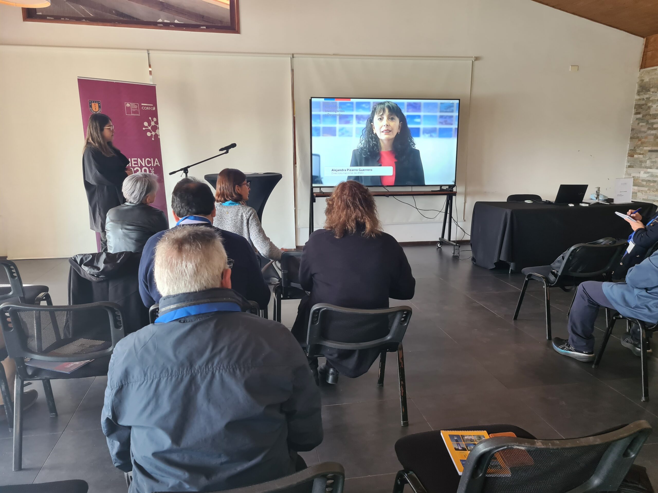 Alejandra Pizarro, Directora Nacional de ANID en representación de la Ministra Aysén Etcheverry, envió un video a los asistentes del evento, resaltando “el valioso ejercicio del Encuentro, para obtener insumos que orienten y contribuyan desde sus propias realidades y contextos a potenciar los avances del quehacer científico”.