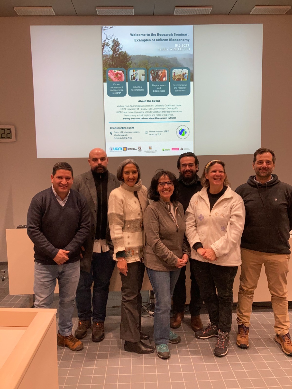 La incursión de la Dra. Alzamora en la Bioeconomía se consolidó y profundizó a través de un convenio con Finlandia llamado “Fostering Green Transition: Bioeconomy in Chile and Finland”, esta nación ha posicionado al sector forestal como pilar fundamental de su estrategia bioeconómica. “Fue la académica Carmen Bravo de la Universidad Católica del Maule quien hizo el primer contacto, desarrollamos hartas actividades en conjunto, ellos vinieron y luego me gané un Erasmus que nos permitió viajar para allá también”.